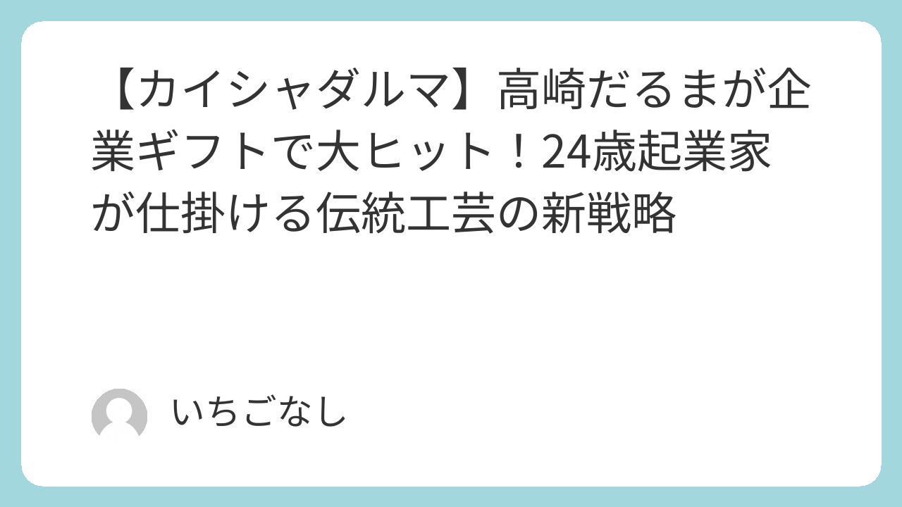 カイシャダルマの成功は、地方の伝統産業が持つポテンシャルと、それを現代的な視点で再構築することの重要性を示している。若い感性とビジネスの視点が、200年の伝統に新たな命を吹き込んだのだ。