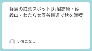 季節のぐんま 群馬の紅葉スポット|丸沼高原・妙義山・わたらせ渓谷鐵道で秋を満喫 群馬に紅葉前線が下りてきました🍁北毛の標高2,000mから東毛の渓谷まで、約2ヶ月にわたって錦秋のグラデーションを楽しめるのが群馬の魅力です。県内では北毛や標高の高い山々の山頂から色づき始め、東毛の平地まで長期間楽しめます。今回は、ロープウ... 2025.10.05 季節のぐんま観光・おでかけスポット