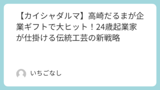 【カイシャダルマ】高崎だるまが企業ギフトで大ヒット!24歳起業家が仕掛ける伝統工芸の新戦略
